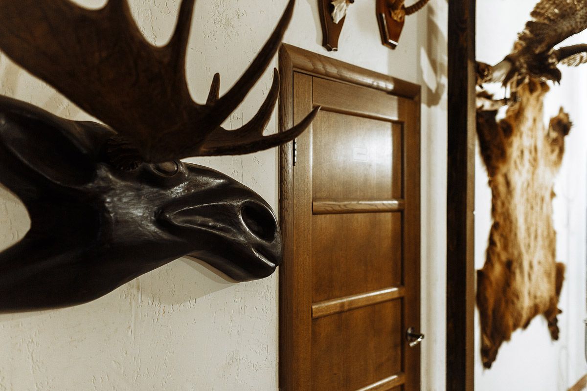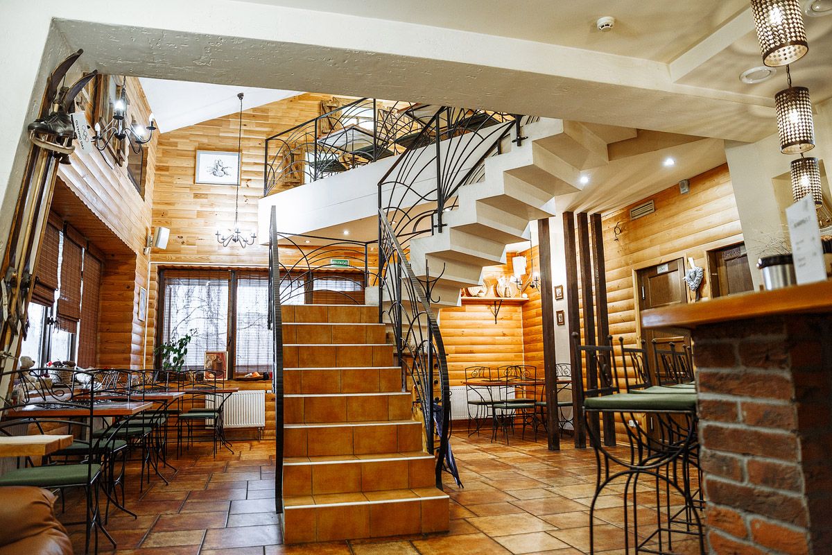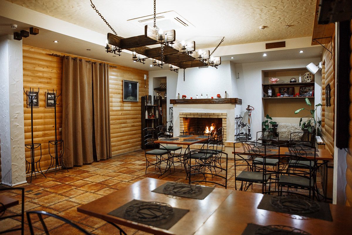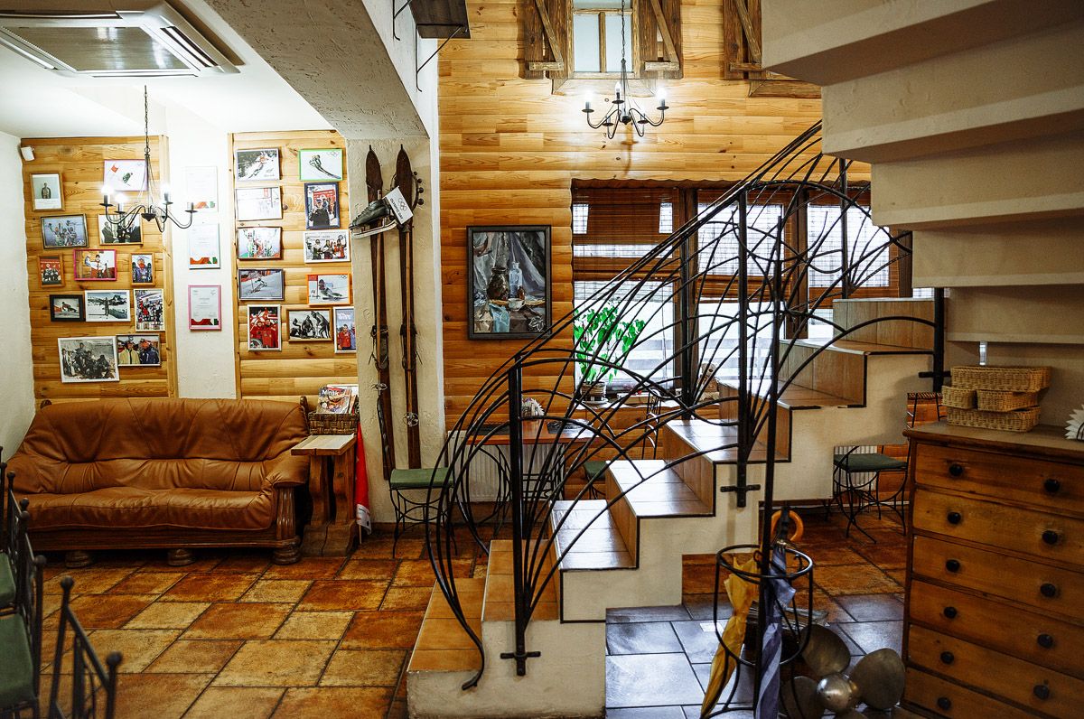 Лаконичный декор в стиле альпийского шале, элементы дерева и ковки в интерьере, открытый огонь в камине создают теплую, уютную атмосферу.